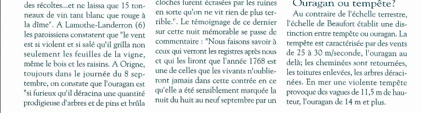 Ce document ne mentionne pas le nom de la commune de Bouliac mais il cite des communes peu éloignées. On peut donc supposer, vu la violence de l'ouragan, que notre commune fut sévèrement touchée. En outre, de nombreuses sources font état des dégâts subis par la flêche de l'église Saint-Michel à Bordeaux (distante de 4 km environ) qui fut détruite, avec ses cloches, sur une hauteur de 24 mètres environ. On peut supposer que le texte ci-dessus, qui cite le clocher de Saint-Michel sans préciser s'il s'agit de celui de Bordeaux, décrit avec précision ce que les Bouliacais ont vécu, pendant 24 heures, le 8 septembre 1768.