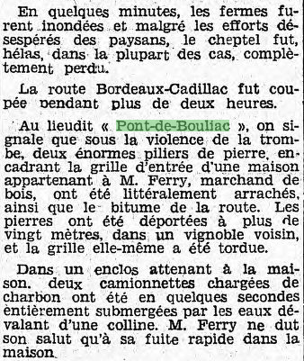 Le "Pont-de-Bouliac" après l'orage du 20 août 1939 On reconnaît le portail de M. Ferry. Les documents ci-joints sont extraits du journal L'HUMANITE.