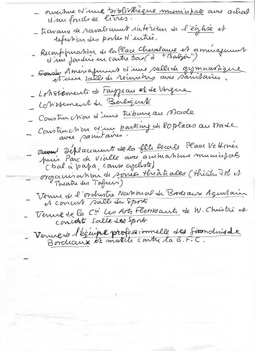 En trois mandats, le nouveau maire va transformer Bouliac : le petit village endormi aux portes de Bordeaux va se transformer en un village moderne : écoles, salle des Fêtes, lotissements, Foyer des Jeunes, ateliers municipaux, salle des Sports, bibliothèque ...