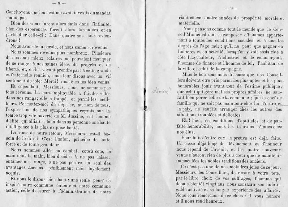 Son conseil ne devait pas être animé par des convictions de gauche ! En effet, le 15 novembre 1925, après avoir pris connaissance de la lettre de M. Marquet, maire de Bordeaux, concernant la création d'un office des municipalités républicaines, radicales et socialistes du département, le conseil a donné un avis défavorable et a chargé le maire de lui répondre.
