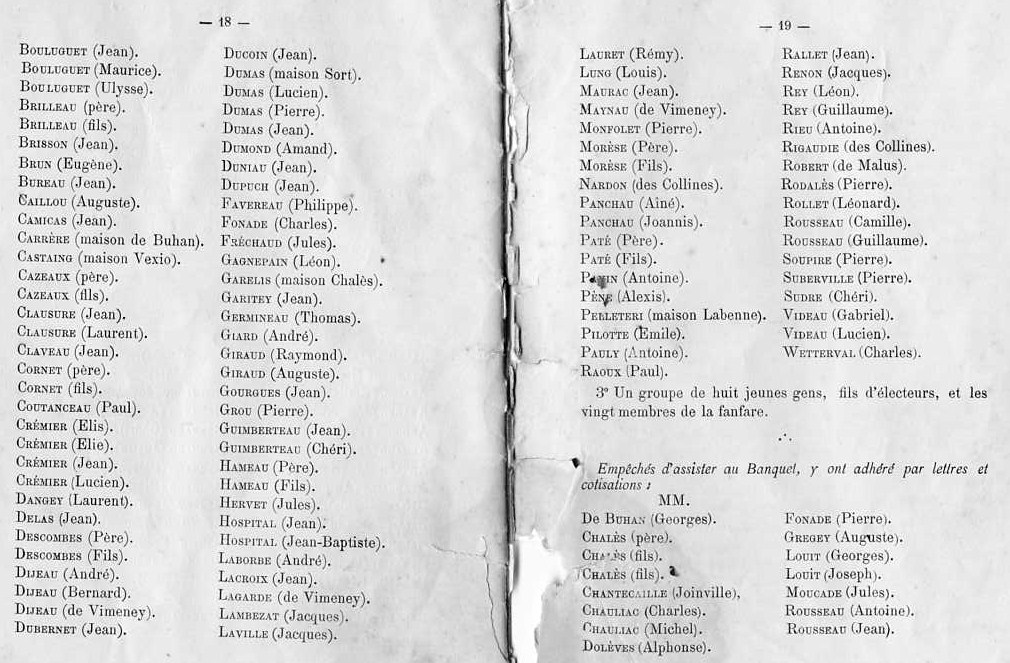 Le 17 novembre 1926, il est décidé que les propriétaires non pourvus d'électricité seront visités par M. Grenier pour le quartier de Malus, M. Maurac pour le chemin de Vimeney, M. Sarjac pour le chemin des Collines.
