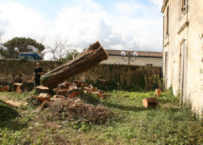 Les travaux commencent par l'abattage de la grande sapinette qui masquait